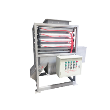 CQZ型全自動在線磁分離機安裝於流水線中以實現在線實時自動清除物料中的鐵質。自動定時控製器可以設定為連續自動實時清理,也可根據鐵質含量情況來設置清理時間間隔。其強大的磁場可以清除流動、幹燥的、流動性好、粉狀的、細小顆粒中的鐵磁性物質。二、示意圖